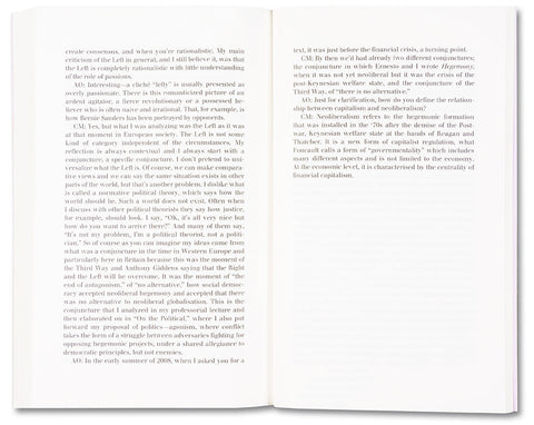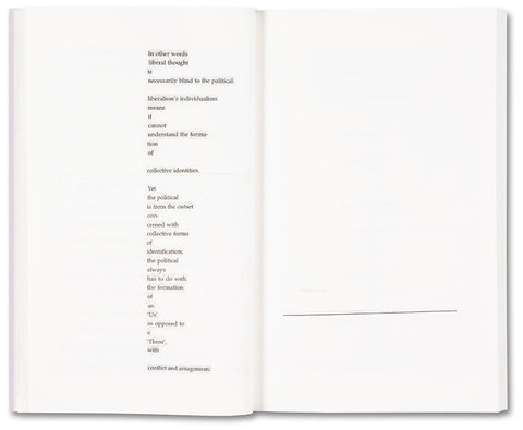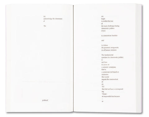 ‘A charming booklet with textual collages using an essay by Mouffe, a political theorist, in which the writer critiques the politics of neoliberalism and warns of its dangers.‘ New Statesman, Books of the Year